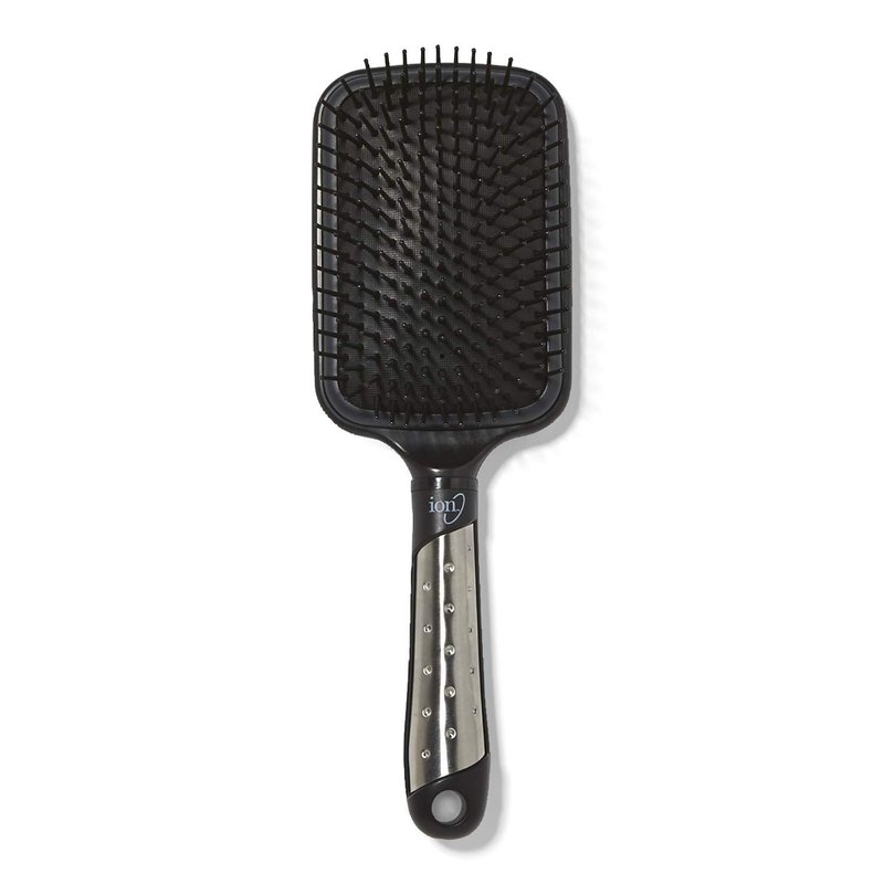 ion Charcoal Paddle Brush has been infused with Ceramic and Charcoal to help neutralize static and reduce dry times when used while blow drying. When heated the ceramic portion of the brush produces far-infrared heat to help seal the cuticle of the hair and reduce frizzy hair.