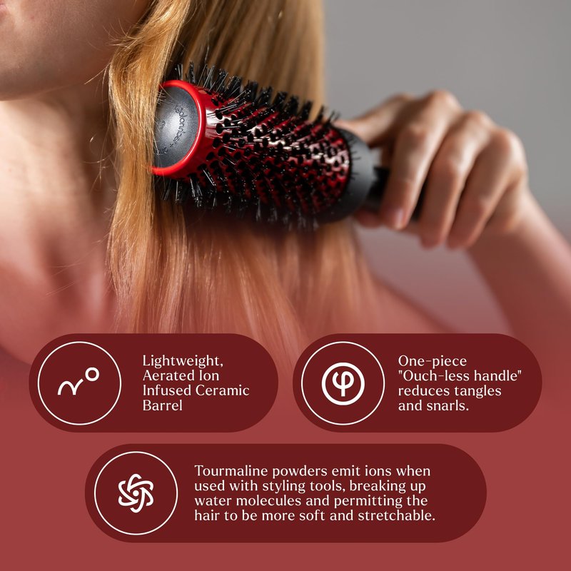 - Elevate Your Styling Game: Transform your hair routine with our versatile Ion Infused Ceramic Round Brush. Whether your hair is wet or dry, this ceramic round brush is designed to help you achieve salon-quality blowout styling right at home. Say goodbye to dull, lifeless hair, and hello to voluminous, frizz-free locks.