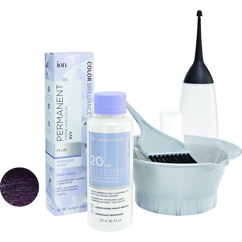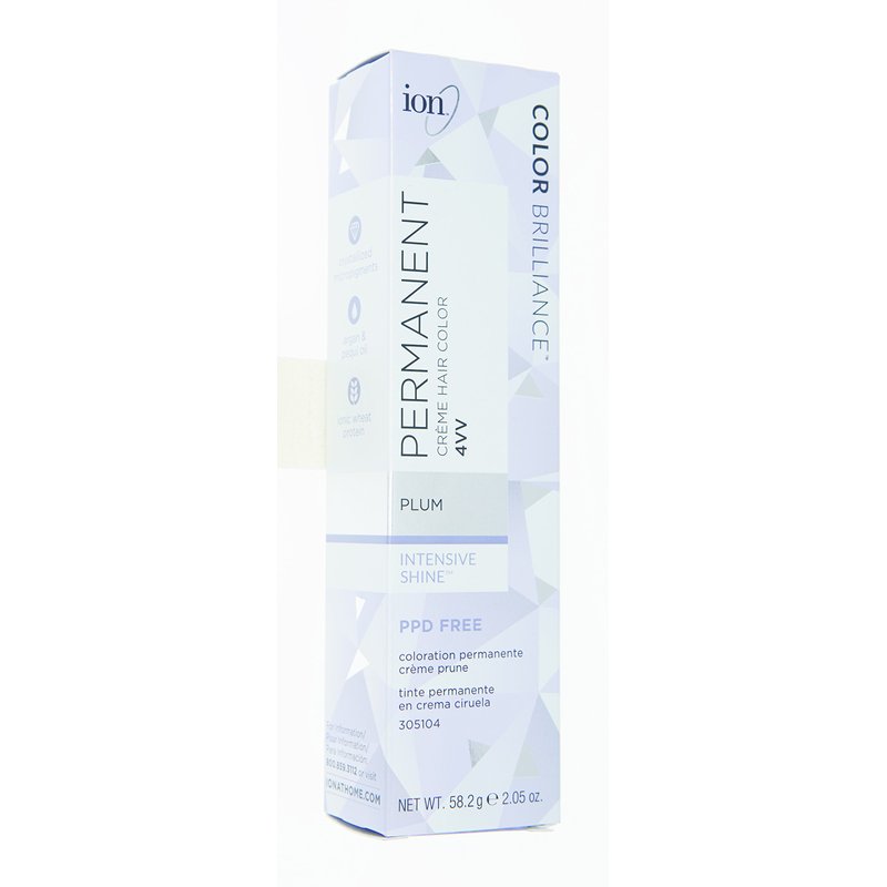 ion Permanent Creme Hair Color 4VV Plum, Vegan, Cruelty Free, PPD Free, 100% Gray Coverage, Long-Lasting, Fade-Resistant Color, 2.05 oz