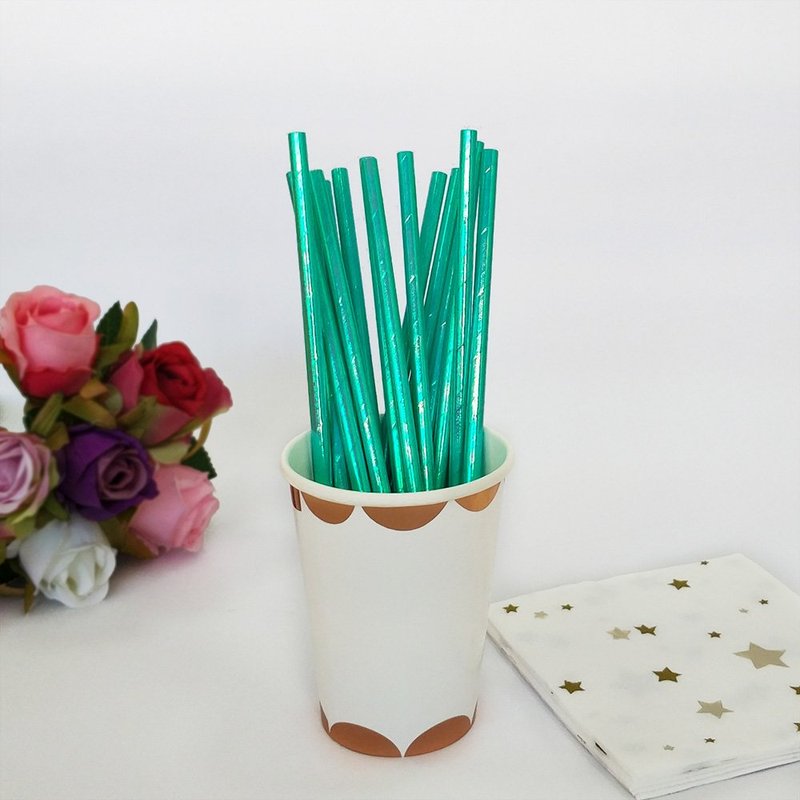 Ipalmay Sparkle Foil Green Mermaid Cocktail Paper Straws, Disposable Biodegradable Drinking, 7.75 Inches, Pack of 100