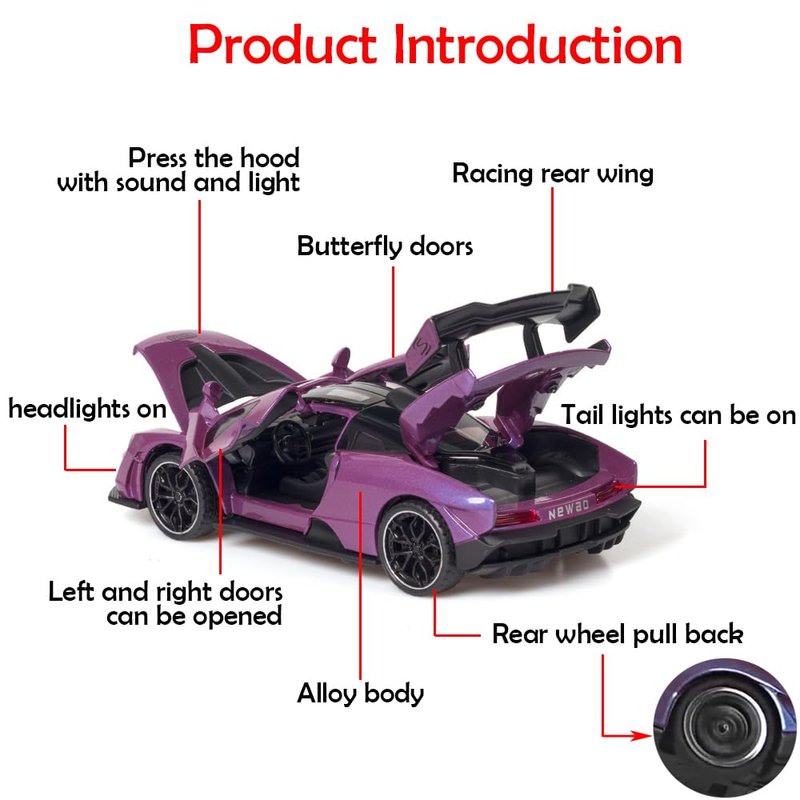 iPariser Toy Cars McLaren Senna Model Purple Alloy Collectibles Die-cast Vehicles with Sound and Light