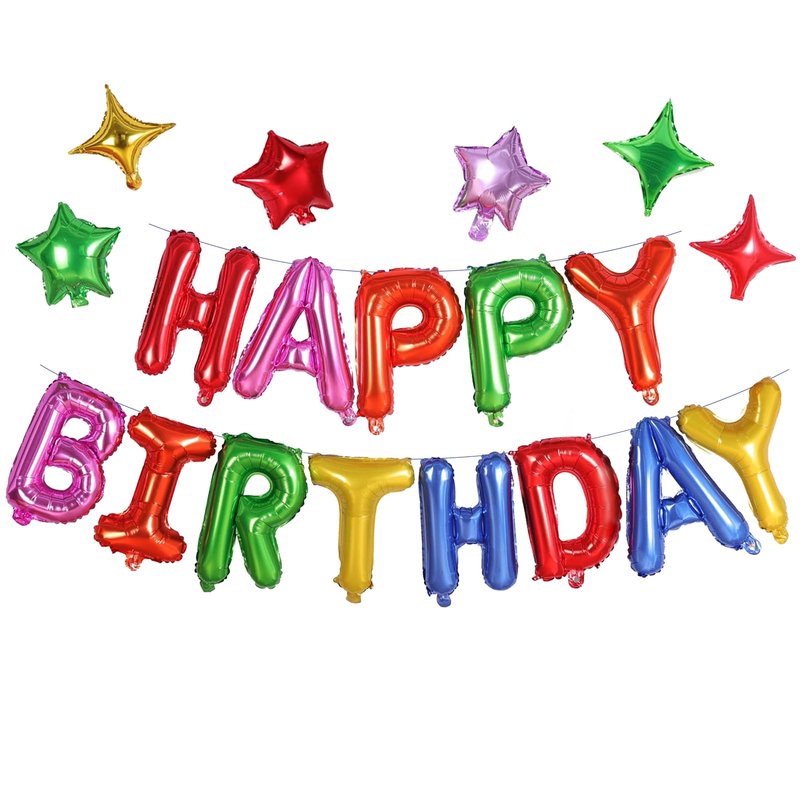 iPartycool Happy Birthday Balloon, 24pcs Birthday Decorations, Happy Birthday Banner, Birthday Party Decorations with 6pcs Star Balloons, Happy Birthday Sign for Kids Adults Birthday Party Supplies