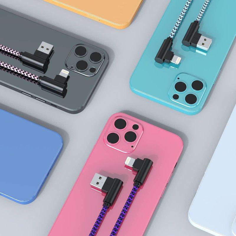 - 90 Degree Elbow Design: Different from the flat iphone charger cable,when you hold the phone without hassle and comfortable to grip for a long time, insert and remove easily. It is more convenient for playing games or watching video while charging