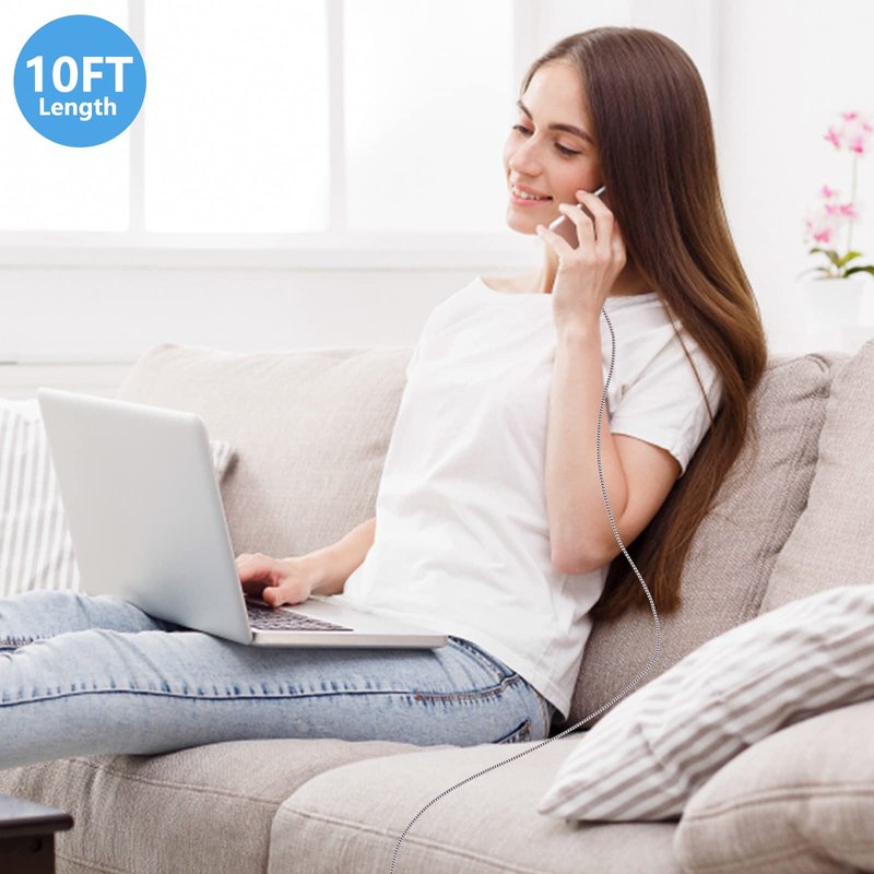 - Extra Long 10 ft iPhone Charger: The length perfect replace your short iPhone charging cable,it's nice to be able to move around if need be while the device is charging,the long length for laying on the couch or bed while using your iPad or phone as it charges