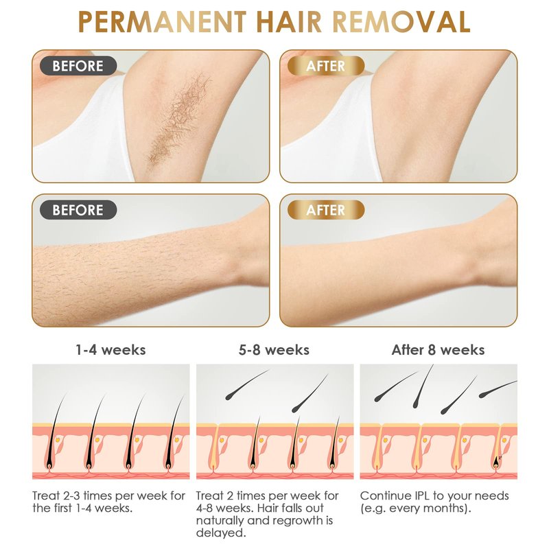 - 【When to see result?】95% hair reduction in 6-10 weeks. Continued monthly treatments the hair is prevented from growing back. 100% SATISFACTION GUARANTEED - If for any reason you are unhappy with our hair laser removal products, please get in touch and we will solve problems for you.