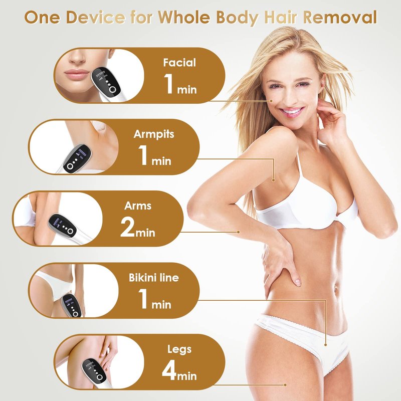 - 【Professional grade IPL】Intense Pulsed Light (IPL) technology. Built to last a life time our IPL hair removal device requires no replacement parts or lasers. Super effective results as treatment in beauty spa and salon. Suitable for use on the face, underarms, bikini line and legs.