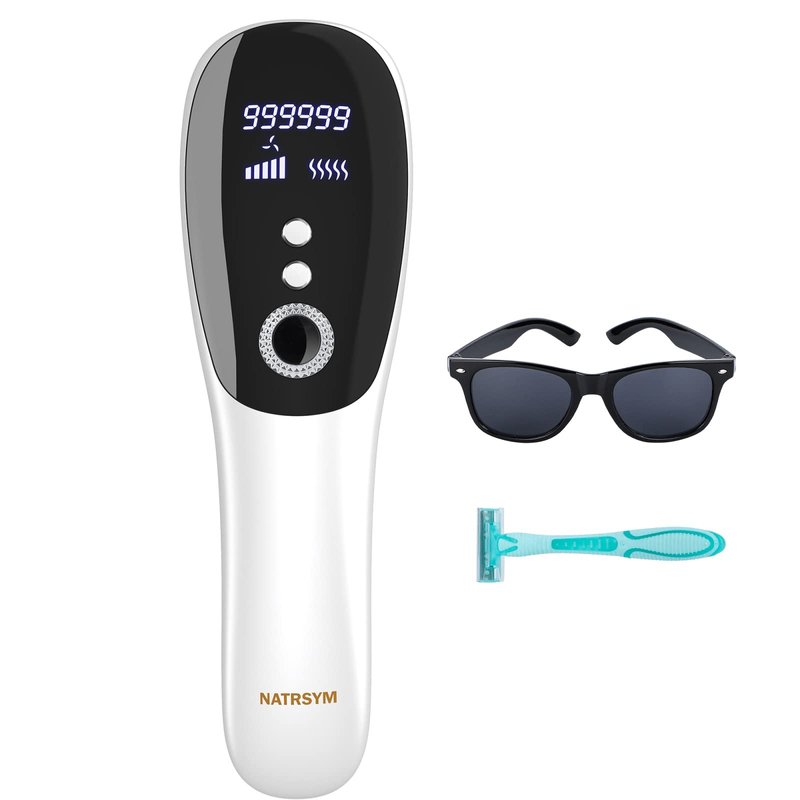 IPL Laser Hair Removal Device for Women,NATRSYM Painless Permanent Facial Upper Lip Bikini Line Armpits Back Legs Arms Face Body Lazer System 999,999 Flashes, Corded (White)