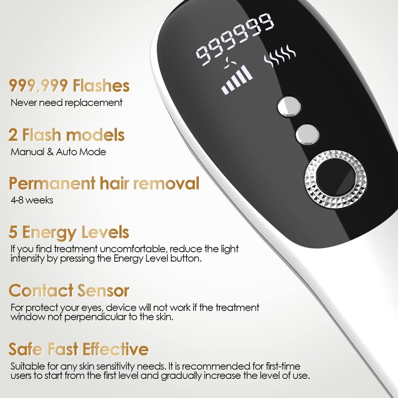 - 【100% Safe Hair Remover】The mildst effective ipl hair removal technology.Suitable for daily use, even on sensitive skin. Safe, simple and convenient to use at home, you can get a hair removal effect like a beauty salon and save much cost and time.