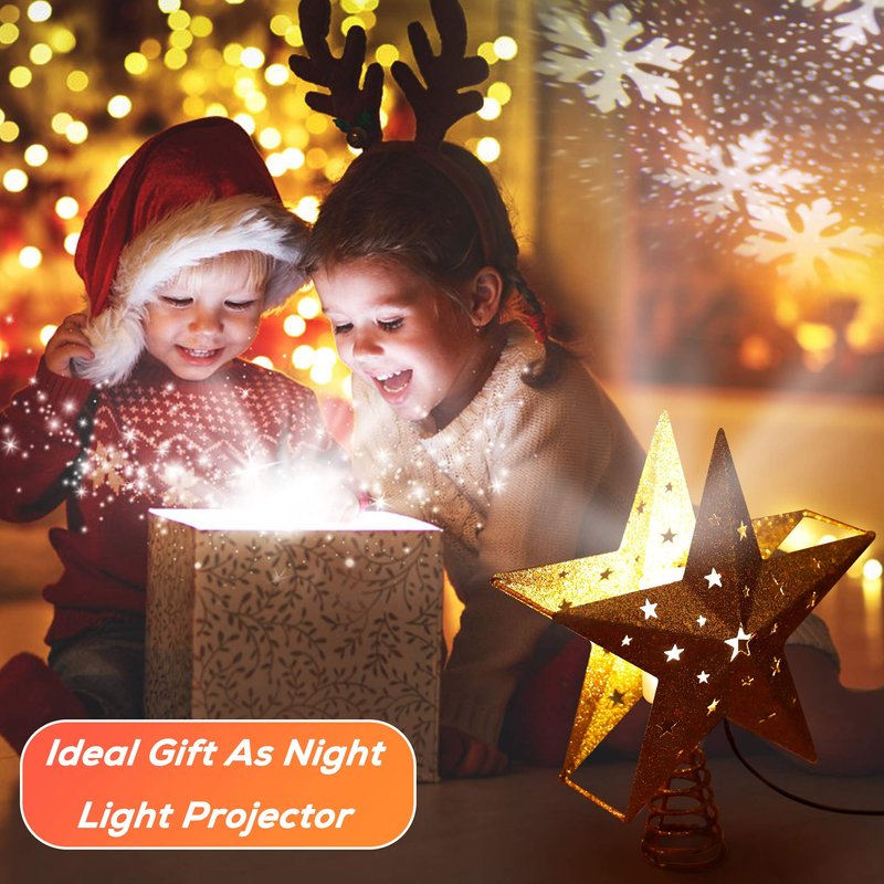 - 🎁Best Christmas Gift For Lover, Friends, Colleagues, Ideal for Children - Our Christmas tree topper is packaged with gift box. It is a great Christmas gift for your family, friends, colleagues. Also ideal as a rotating LED night light projector for children. Everyone will be feeling the magic of the holiday season.