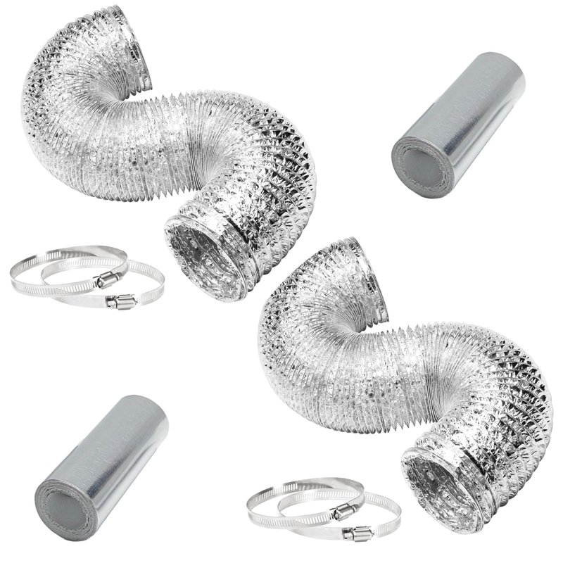 iPower 4 Inch 8 Feet Non-Insulated Flex Air Aluminum Ducting Dryer Vent Hose for HVAC Ventilation, 2 Pack, 4 Clamps included
