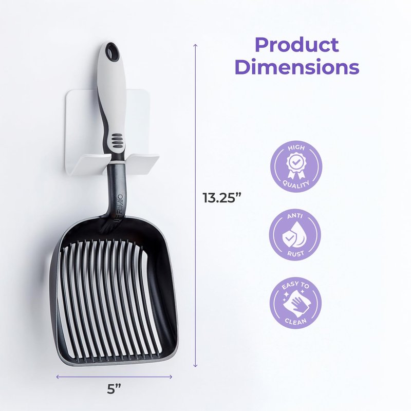 - Convenient Storage: Includes a plastic wall hanger with strong 3M adhesive for easy storage, keeping your metal cat litter scoop within reach and your cleaning space neat, tidy, and well-organized