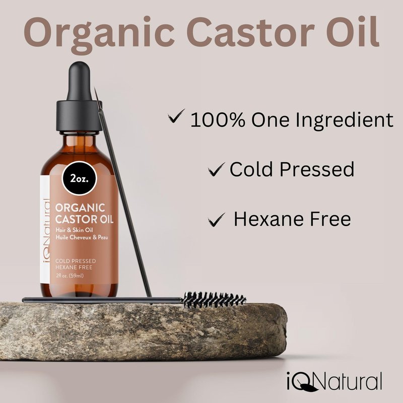 - Eyelash Growth Serum: Our lash serum for eyelash growth is cold-pressed castor oil organic and hexane-free. iQ Natural castor oil for hair growth contains all the natural botanicals you want in organic castor oil for eyelashes and eyebrows.
