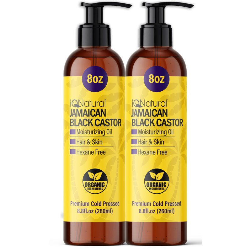 IQ Natural Jamaican Black Castor Oil for Hair Growth and Skin Conditioning, 100% Pure Cold Pressed, Scalp, Nail and Hair Oil - (2 PACK Unscented) (8oz)