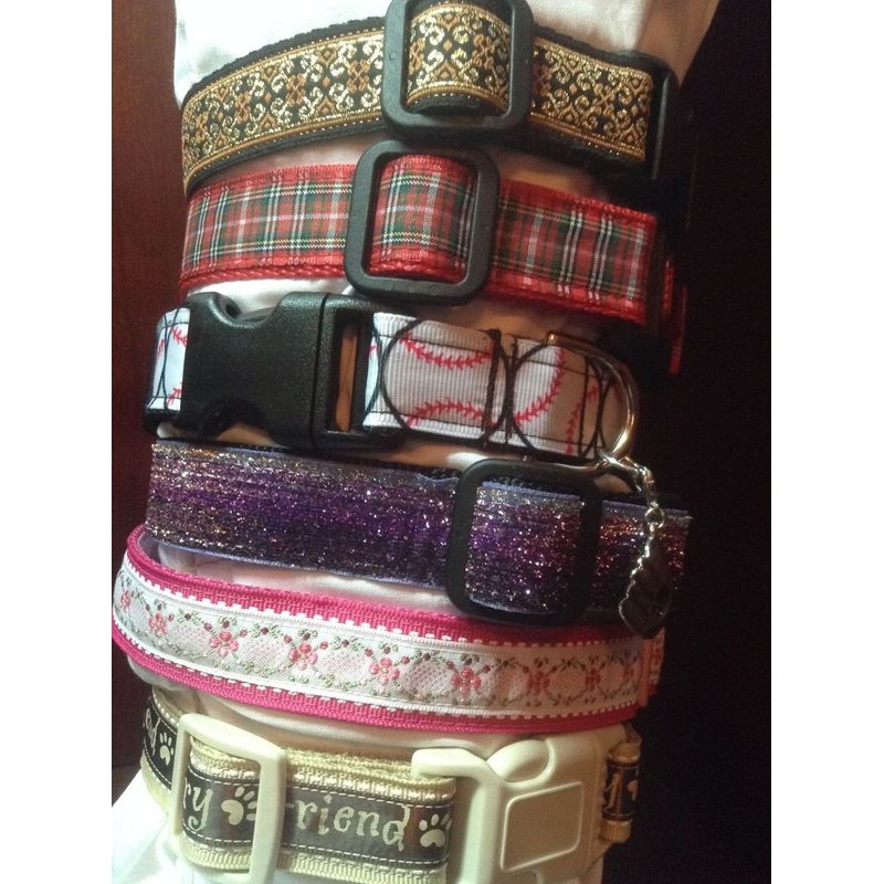 We love our dogs because they are each unique. So why not a collar/leash set as unique as your beloved pet. This USA Made, artist created dog collar is excellent quality and should fit 20-50 lb Dogs BUT, please measure your pets neck. Collar will fit 11Ó-15". Lead is 58" long. Both 1" wide. Super strong. Double stitched high fashion. If you like this pattern other sizes available on request. 30 day returns for any reason and we pay return shipping. Hand Crafted in USA. Shipped Priority