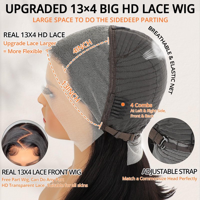 - Wigs For Black Women Human Hair HD Lace : 13x4 HD Transparent Lace , Human Hair Lace Front Wigs Hairline with Baby Hair, Can Be Free Parted, Medium Size Cap (22-22.5 Inch) with 4 Combs and Adjustable Straps, More Comfortable to Wear