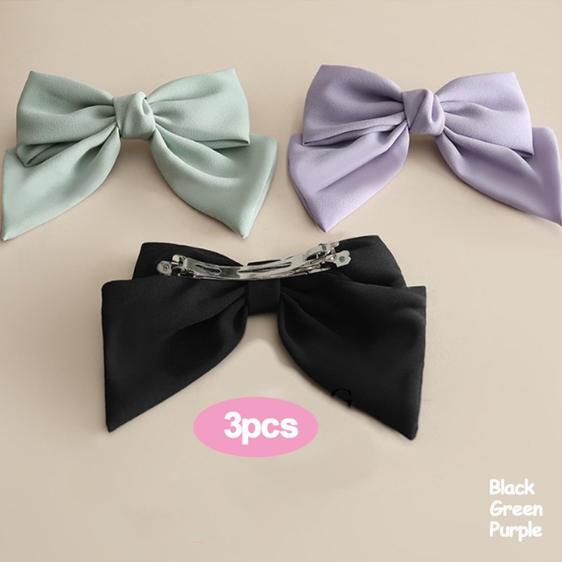 - Package include 3pcs hair barrettes with bows, solid color as black, purple, green.