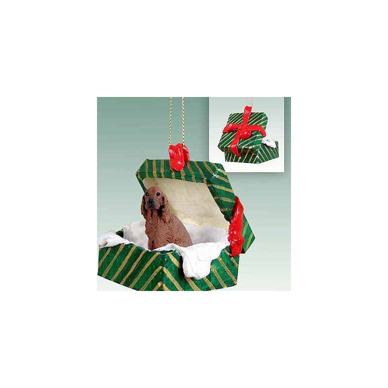Irish Setter Gift Box Christmas Ornament - Delightful!