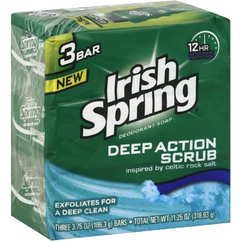 Irish Spring Deep Action Smoothening,Moisturizing,Exfoliating Scrub Bar Soap 3 Pack