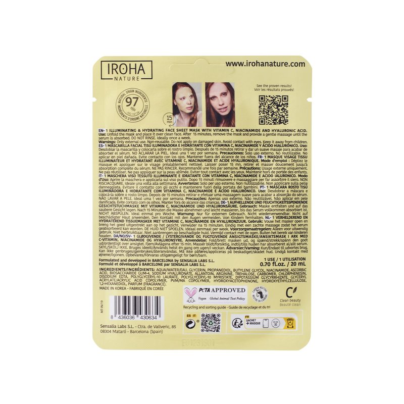 - EFFECTIVE AND VEGAN PRODUCT: The mask is dermatologically tested and has proven results. The product is made with 97% natural ingredients. It is environmentally friendly as the mask is 100% compostable. Iroha Nature products are vegan, cruelty free and PETA certified since 2021.