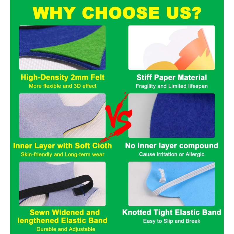 - Your Voice, Our Priority - Based on 300+ valuable customer feedback, we have upgraded our Felt Dragon Masks to Dragon Song Era 2.0 to prioritize your kiddo's comfort. The addition of a soft fabric layer on the back ensures a gentle and cozy feel against the skin and strive to make wearing our masks a delight.