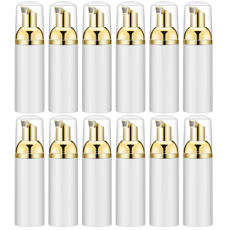 IRON BILL 2 Oz Empty Foam Pump Bottle (12PCS) Travel Foaming Soap Dispenser for Hand Soap, Lash Shampoo Cleanser (White&Gold)