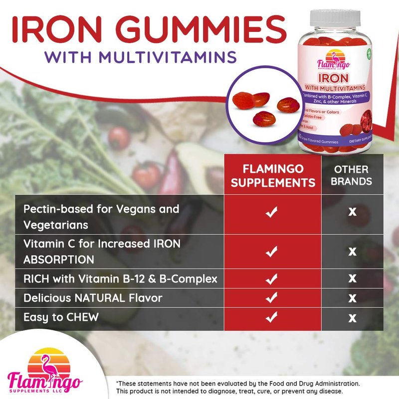 - Perfect for women, kids, and men, our conservatively dosed iron gummies are an essential addition to your daily routine. With B complex B3, B6, B12, B5, Vitamin C, Zinc, it's the ultimate iron supplement for maintaining optimal health and preventing iron deficiency.
