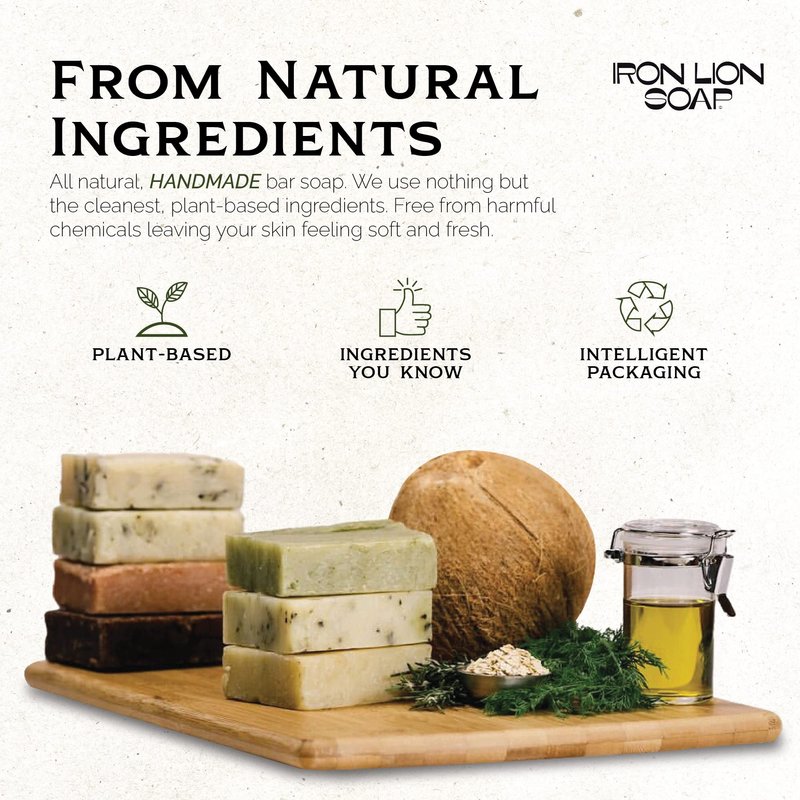 - ECO-FRIENDLY COMMITMENT: We take pride in our eco-friendly and plant based approach. Our natural soap comes in post-consumer recycled packaging, embodying our dedication to both your well-being and the environment. When you choose Iron Lion Soap, you choose a greener tomorrow. Perfect for sensitive skin, our handmade soap makes every wash a step towards a clean and fresh feeling.