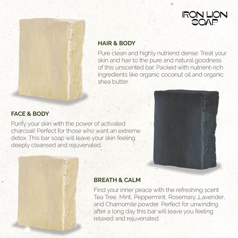 - HANDCRAFTED WITH LOVE: Each bar of Iron Lion Soap is a work of art, meticulously handmade in small batches. The result? A diverse range of enchanting scents that enhance your skincare routine. The rich lather leaves your skin feeling soft and nourished, providing an effective cleanse that's naturally derived. Enjoy our products as a hand soap bar or bath soaps for your face and body.