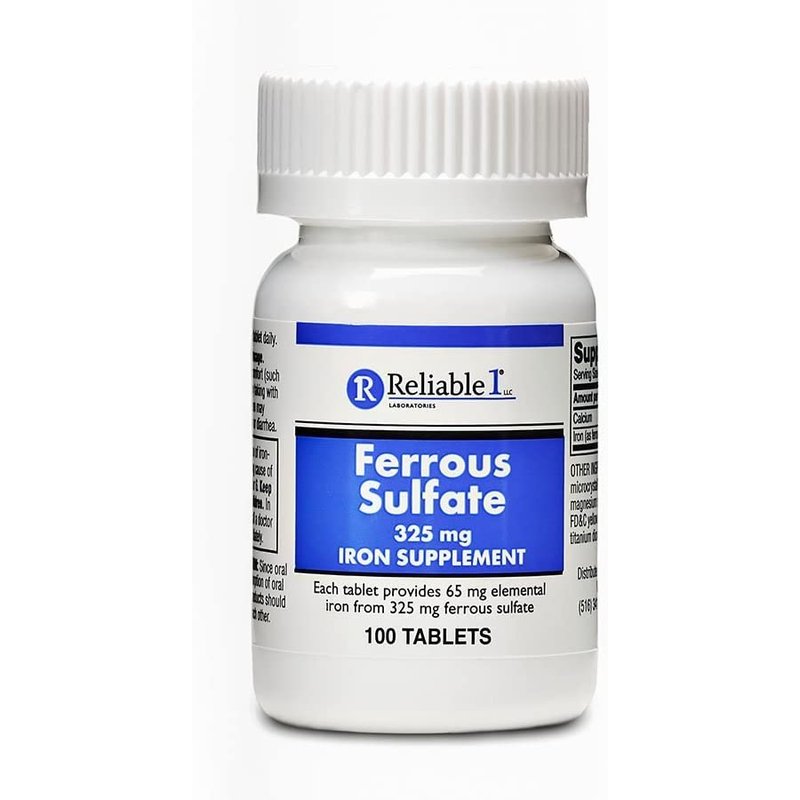 - FERROUS SULFATE Reliable 1’s iron supplement contains 325mg of ferrous sulfate in each tablet, providing 360% of daily value. Made in the USA.