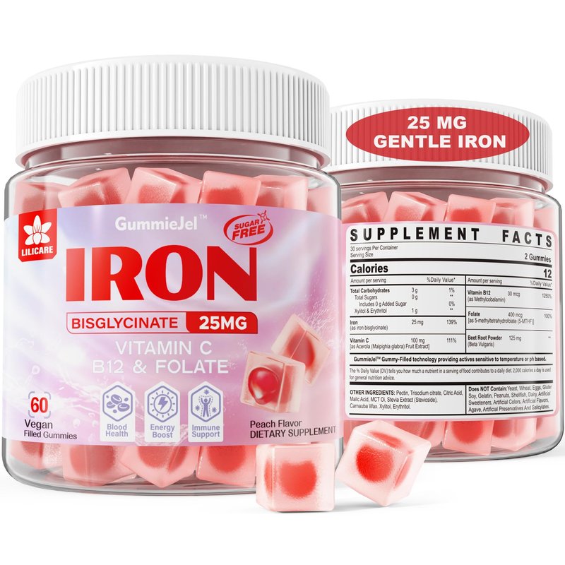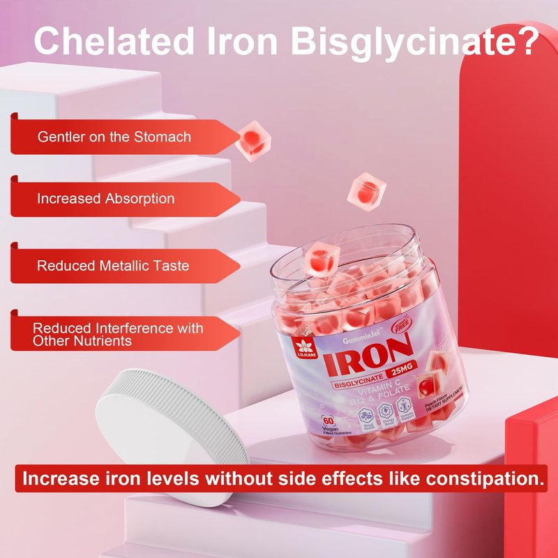 - The Better Iron Form: Iron is difficult for the body to absorb, and supplementing with conventional forms of iron, including ferrous sulfate, can cause gastrointestinal side effects – such as nausea, constipation. Lilicare's Iron Bisglycinate contains iron reacted with glycine to optimize its absorption in the gastrointestinal tract, thus minimizing the typical side effects of iron supplementation.