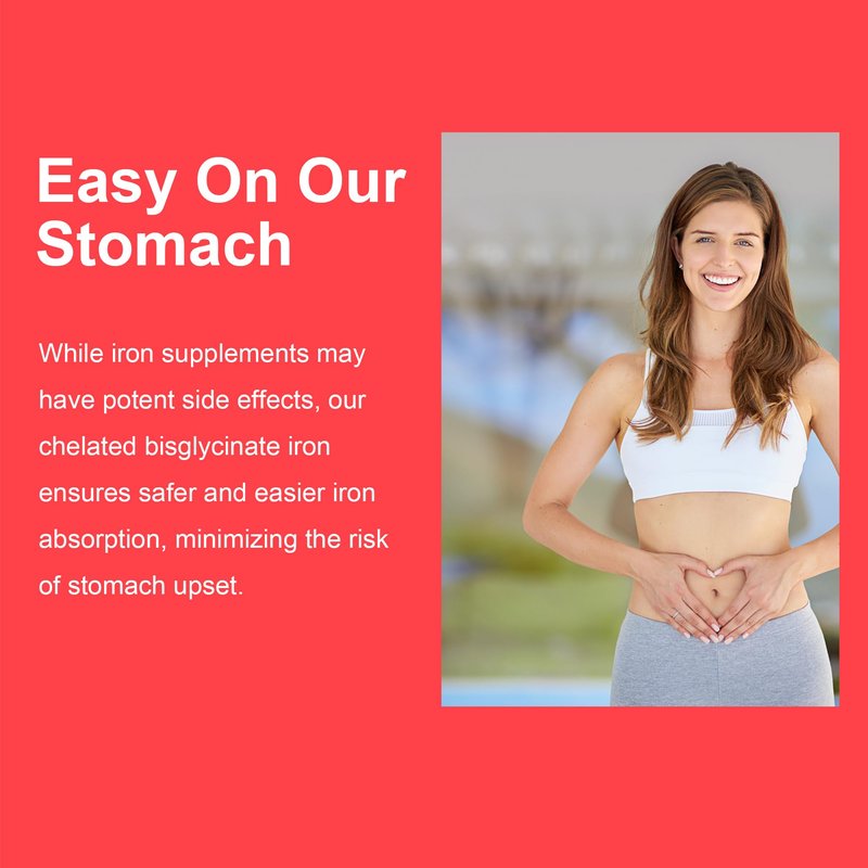 - Gentler on the Stomach: Iron supplements, especially in other forms like ferrous sulfate, can often cause gastrointestinal discomfort, including nausea and constipation. Iron bisglycinate is considered to be gentler on the stomach, reducing the incidence of these side effects. A candy-like vitamin that's easy for the stomach to digest and an easy way to take a daily dose of iron, perfect for everyone, from athletes to pregnant women to vegans.