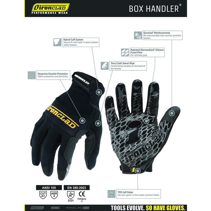 Ironclad Box Handler Work Gloves BHG, Extreme Grip, Performance Fit, Durable, Machine Washable, (1 Pair), Medium - BHG-03-M , Black