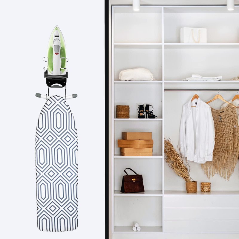 Keep your home neat and organized. Ironing board hanger wall mount designed for storing your hot unplugged iron and ironing board in one place for space saving.