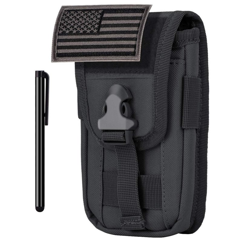 IronSeals Tactical Cell Phone Holster Pouch, Smartphone Pouch Case Molle Attachment Gadget Bag Belt Holder Waist Bag for 4.7"-6.7" with Armor Case on with US Flag Patch and Stylus