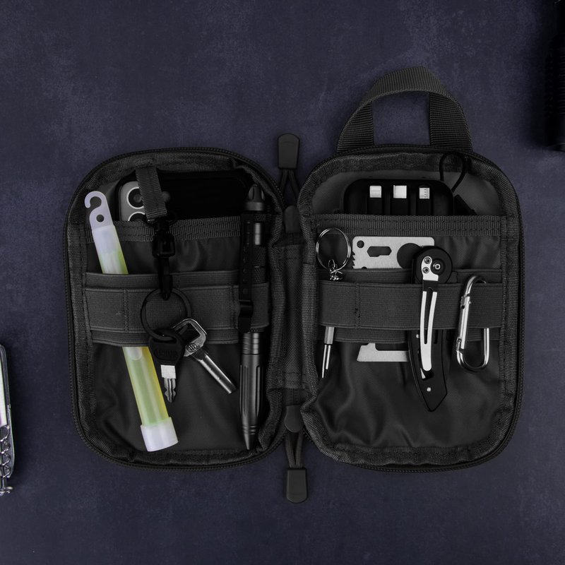 - Structure: 2 inner slip pockets and 1 outer mesh pocket; lanyards to hold keys, ID cards; different width elastic loops for many small tools.