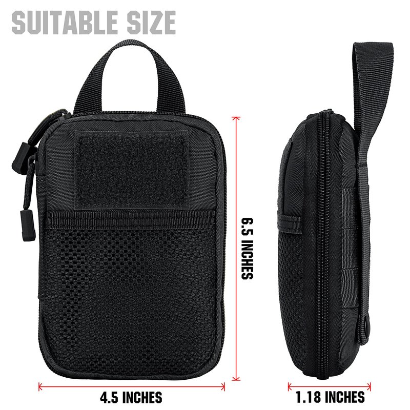 - Size: 4.5" x 6.5" / 11.5cm x 16.5cm. Perfect for storing your cellphone, cards, tool, flashlight, pen, notebook, fire starter, headphones, keys ets. It can also be used as a meidical pouch.