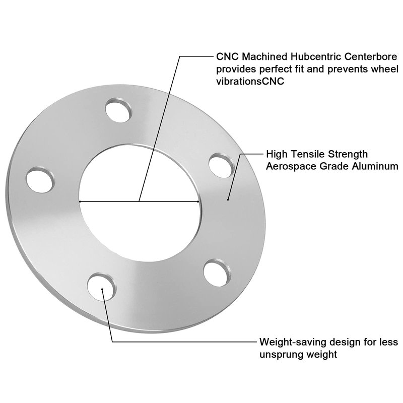 - 【PREMIUM QUALITY】wheel spacers are CNC machined from 6061-T6 aluminum billet, more accurate, smoother, stronger and more beautiful than other casting similar products, efficiently eliminate the risk of vibrations, easy to instal. Silver anodized surfaceare provides additional resistance to corrosion.