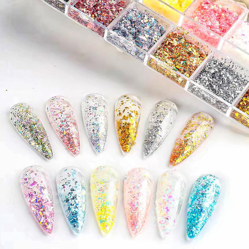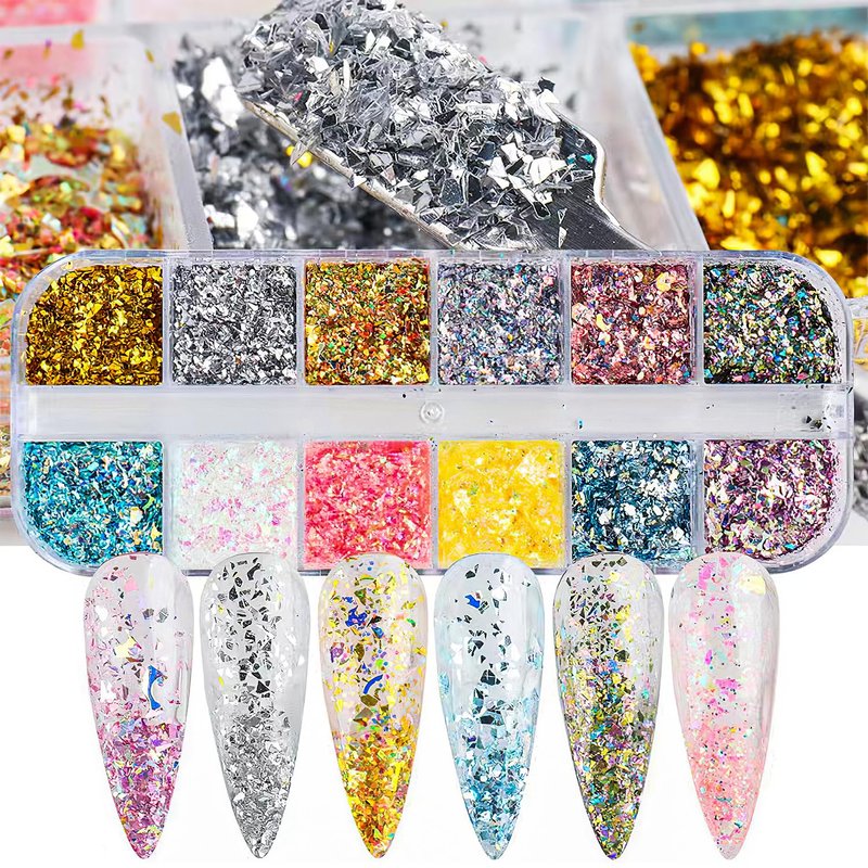 - 【Irregular Nail Foil Chips】Our irregular glitter for nails are made of tin foil that is super soft, easy to be ripped and pressed into chip, shimmering, pretty and chic, give more luxurious feelings to your nail art.