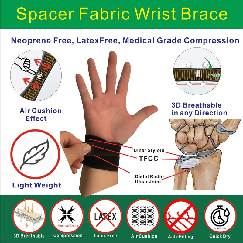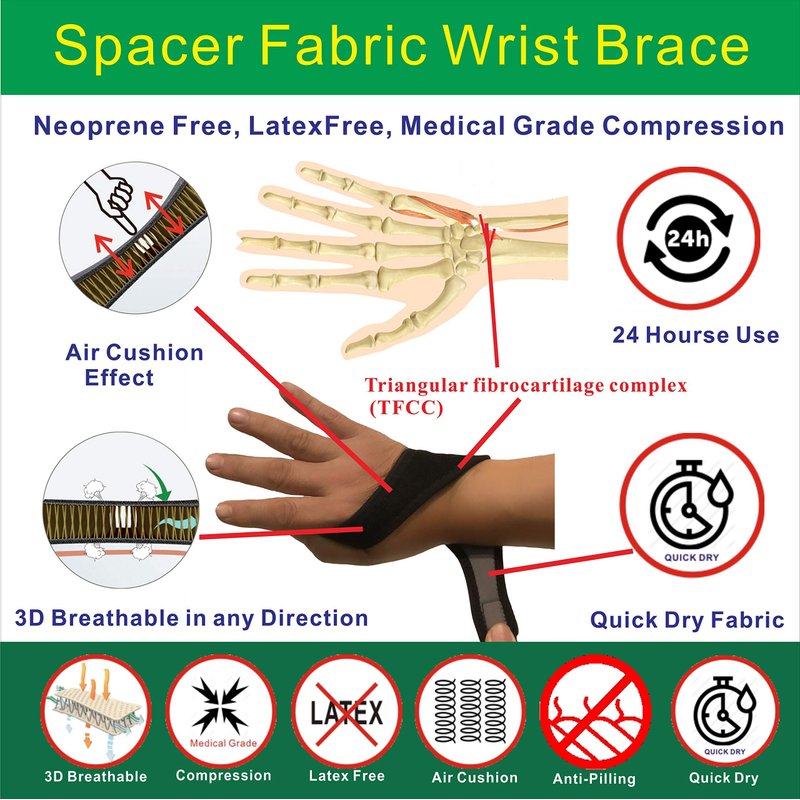 IRUFA,WR-OS-17,3D Breathable Spacer Fabric Wrist Brace, for TFCC Tear- Triangular Fibrocartilage Complex Injuries, Ulnar Sided Wrist Pain, Weight Bearing Strain, One PCS (Spacer Fabric)