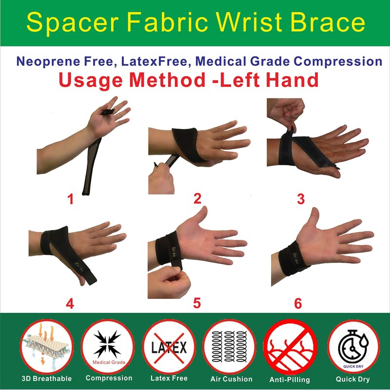 Only Spacer fabric have air cushion effect. Not all the spacer fabrics are the same. Most of spacer fabric in the market do not have enough compression. Irufa have developed a series medical grade compression Spacer fabric and Braces. Spacer Fabric have much more breathable and moisture wicking than Neoprene or PU foam. Not like most of tubular knitted fabric have the latex content and allergy problem. Spacer fabric is latex free and hypo-allergenic. Elastic spacer fabric is much more expensive and comfortable than non-elastic spacer fabric. We choice elastic spacer fabric to meet the customer's need. The criteria to judge a good material for sporting & Medical braces are elastic, enough compression, comfortable, breathable, durable, no allergy, easy care, and additional added on functions. Our patented pacer Fabric can meet all these criteria and should be one of the best material for the sporting & Medical Braces Irufa patented Spacer Brace is 3D breathable, compression and support to treat pain and chronic problem. The Braces is adjustable, easy use, comfortable and effective. Irufa’s patented material are neoprene free and latex free, so you don't have to worry about skin irritations.
