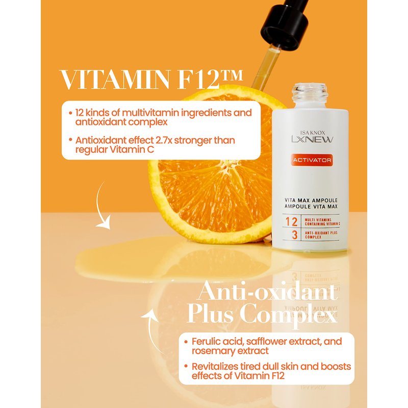 - ISA KNOX VITAMIN MAX AMPOULE WEEKLY KIT (5ml/0.17fl oz x 3) - LXNEW Vitamin Max Ampoule is a lightweight serum infused with nourishing ingredients, notably vitamin C, that enhance the skin's natural radiance and elasticity. It delivers intense moisture for an immediate, revitalized healthy glow. Each kit includes three mini-sized ampoules to maintain maximum freshness and reduce exposure to air.