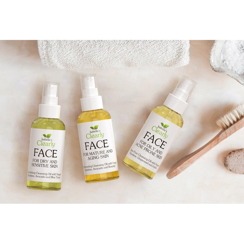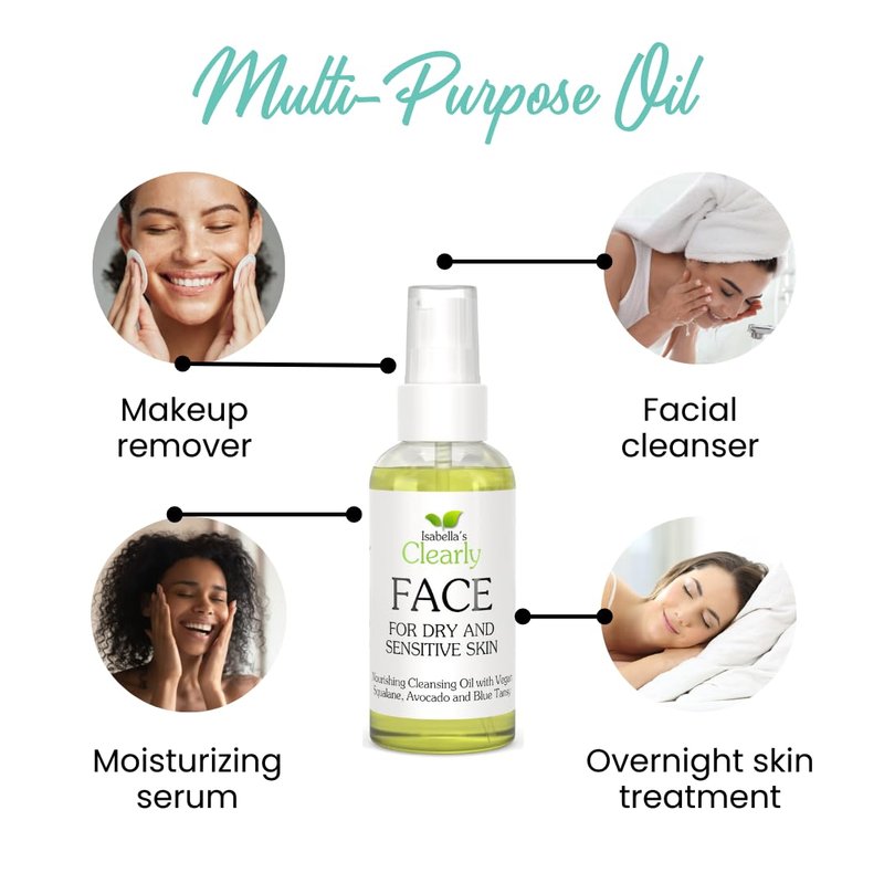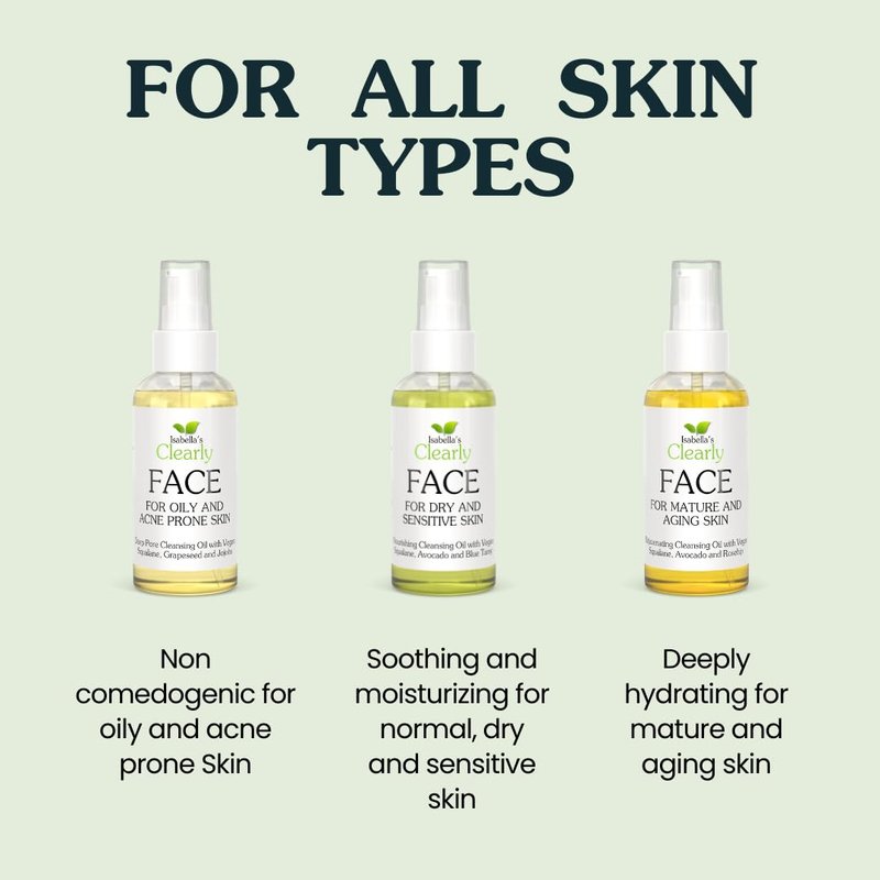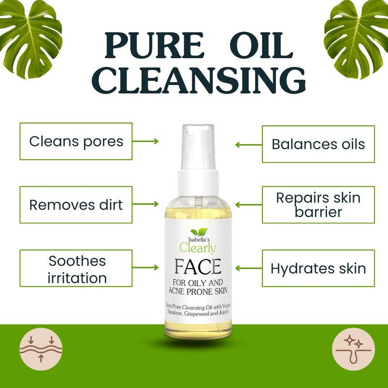 Isabella's Clearly FACE, Natural Deep Pore Cleansing Oil with Jojoba, Grape Seed, Vegan Squalane | Non-Comedogenic Makeup Remover and Face Wash | Water Free, Made in USA