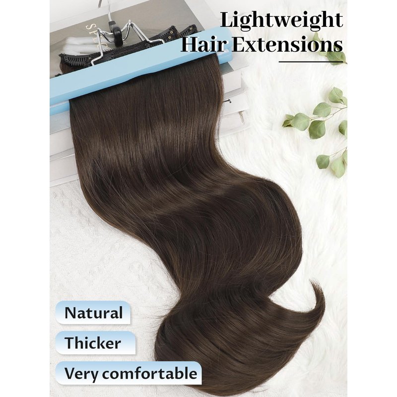 - ADVANTAGES : clip in hair extensions are more comfortable, healthier, easy to work with, easy to wear, high quality, beautiful design, blend well with your own hair, dark brown hair extensions are firmly sewn and comfortable to wear. xx hair extensions are easy to wear and won't damage your scalp. You can have an elegant and charming look in just 5 minutes.