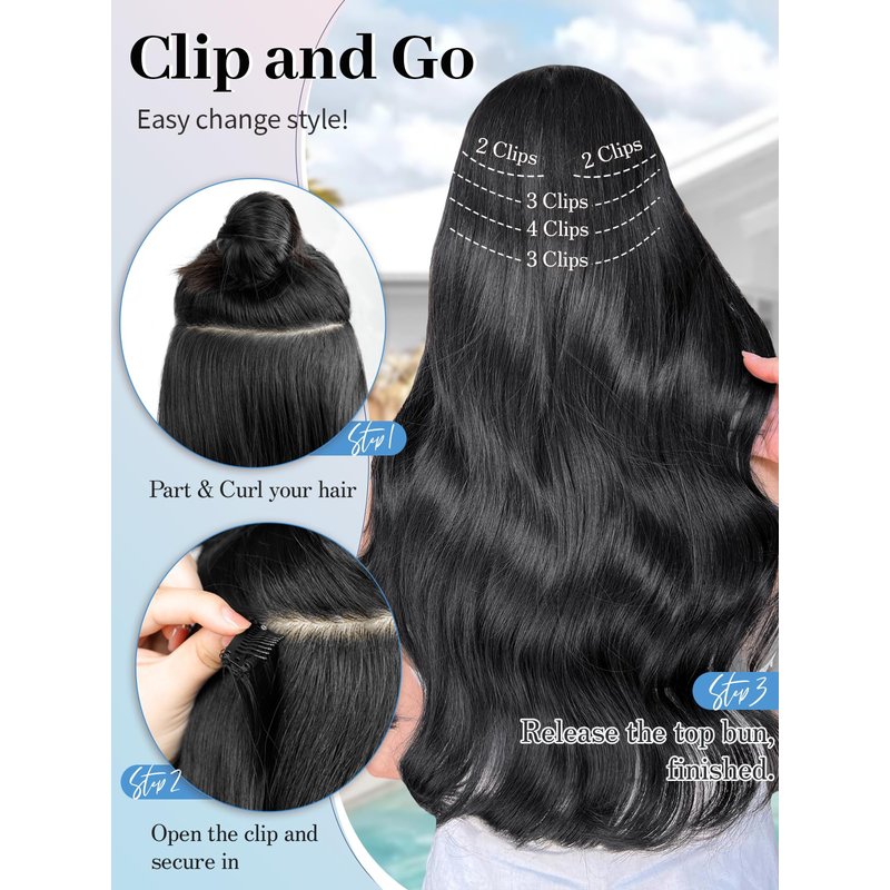 - CLIP IN HAIR EXTENSIONS MATERIAL : High quality synthetic hair extensions with a newly upgraded lace weft that lays seamlessly flat on your head, which makes them more affordable than human hair extensions while still providing a realistic look.