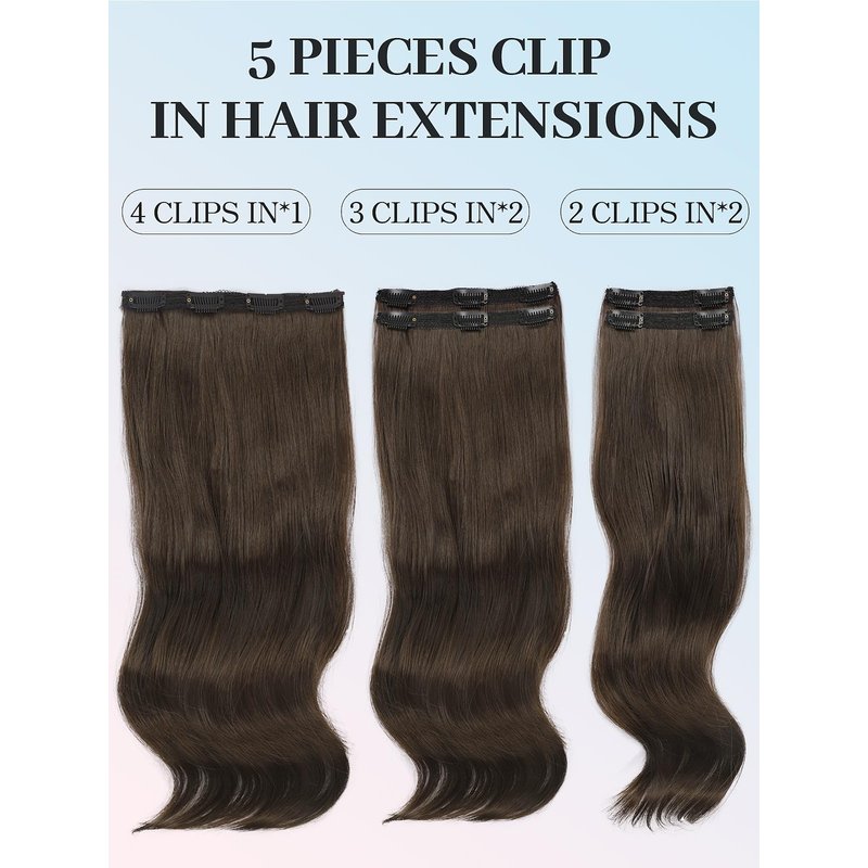Isaic Clip in Synthetic Hair Extensions Long Straight Wavy Layered Hair Extensions 5PCS Thick Hairpieces Chocolate Brown Fiber Double Weft Natural Hair Extensions 16 Inch for Women