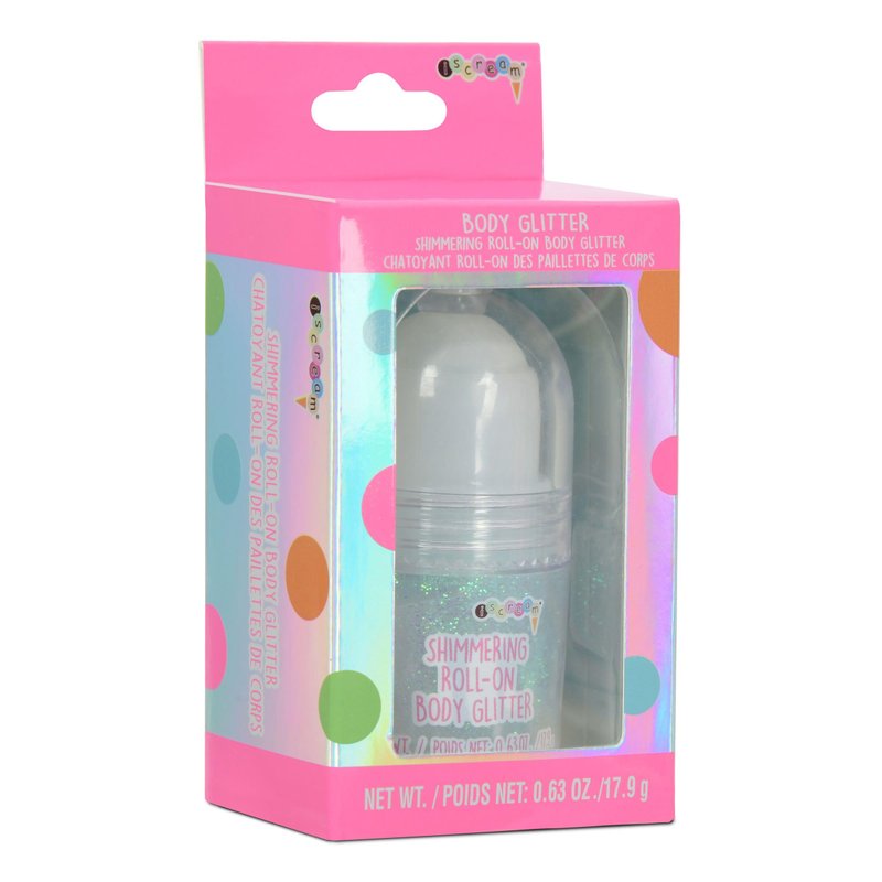 Every girl loves to add a little sparkle and shine to her look before she heads out to greet the world! Roll on some shimmery body glitter and she'll be ready for anything that comes her way! This fun little roll on glitter goes on clear and leaves a holograhic shimmery glow wherever it rolls! Add some to shoulders or cheek bones for a fun sparkle and just the right touch of glamor. Body glitter is beautifully packaged in a pretty silver box so it is perfect for giving! Roll on bottle contains a total of .63 fl oz of body glitter. The perfect combination of colorful fun, to-die-for design and quintessential quality - just what you expect from iscream!