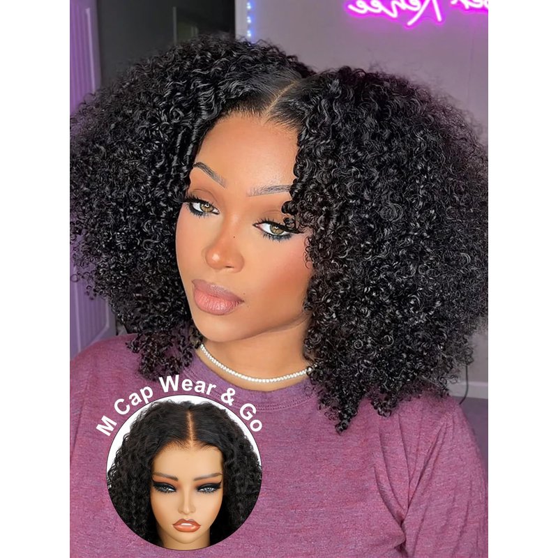 ISEE M-Cap Kinky Curly Wear Go Glueless Wigs Human Hair Pre Plucked Pre Cut Bleached Knots 9x6 HD Lace Glueless Human Hair Wigs For Women 24 Inch