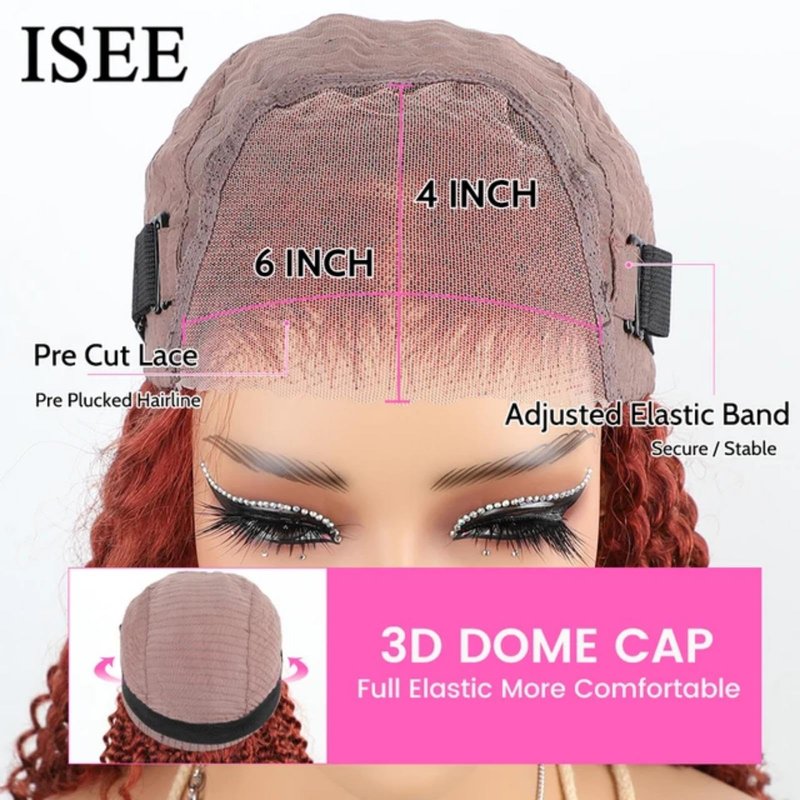 ISEE Reddish Brown Lace Front Wigs Human Hair Pre Plucked 6x4 HD Water Wave Human Hair Wear Go Wig Colored 10A Reddish Brown Frontal Wig 180% Density Glueless Wigs Human Hair Wig 20 Inch