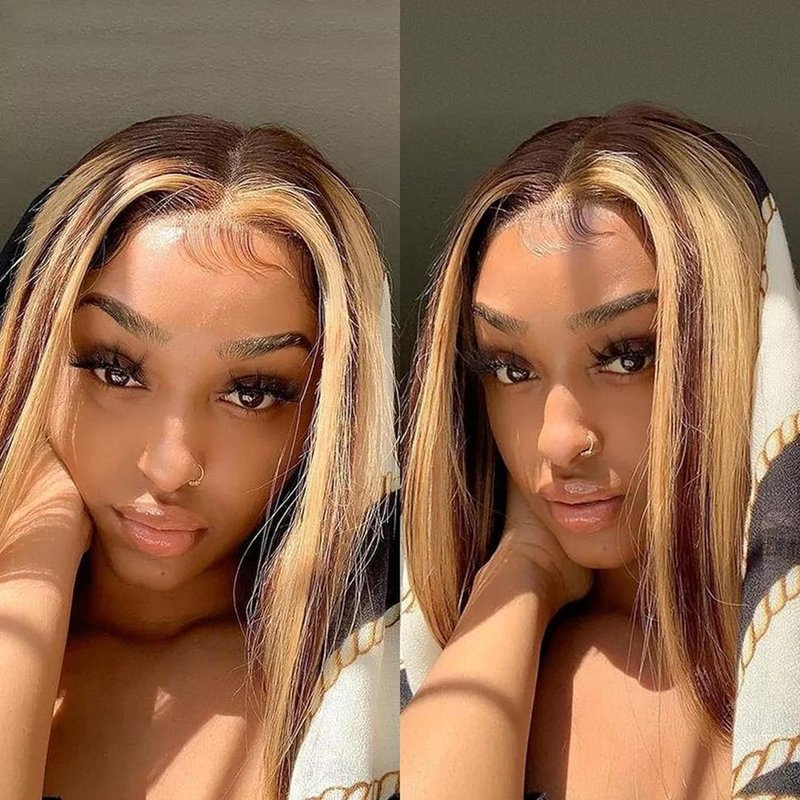Hair Texture: Short Straight GluelessHighlight Bob Wig Human Hair