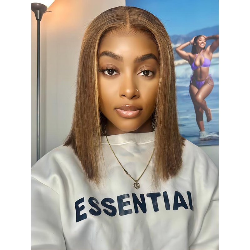 - [Wear and Go Glueless Bob Wig ]: Highlight Bob Wig Human Hair Cut From Young Girls Head Directly.No Shedding And Tangle Free Can Be Dyed,Bleached And Flat Ironed As Your Own Hair,4x4 Lace Clsoure Cute Bob Wig,True To Length.